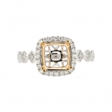 Cushion 7.5mm Halo Ring Semi Mount In 14k Dual Tone (white/yellow) Gold With White Diamond