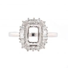 Cushion 8x6mm Ring Semi Mount In 14k White Gold With White Diamond (rg0836)