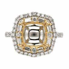 Cushion 8mm Ring Semi Mount In 14k Dual Tone (white / Yellow) Gold With White Diamond (rg0748)