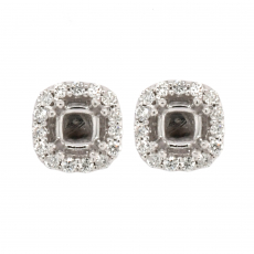 Square Cushion 3.4mm Halo Earring Semi Mount In 14k White Gold With White Diamonds