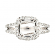 Square Cushion 7.5mm Ring Semi Mount In 14k White Gold With White Diamonds