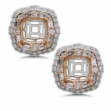 Square Cushion 7mm Earring Semi Mount In 14k Dual Tone (rose/white) Gold With White Diamonds(er0254)