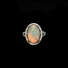 3.80 Carat Ethiopian Opal And Diamond Ring In 14k White Gold