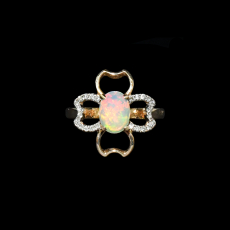 Ethiopian Opal Oval 1.05 Carat Ring In 14k Yellow Gold With Accented Diamond Ring