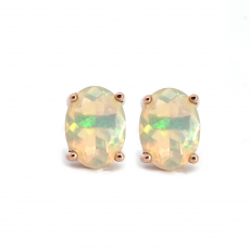 Ethiopian Opal Oval 1.64 Carat Stud Earrings In14k Rose Gold