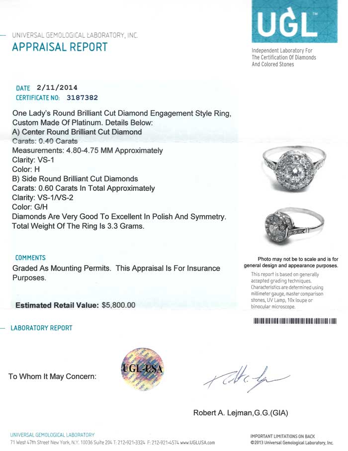 Universal Gemological Lab Appraisal