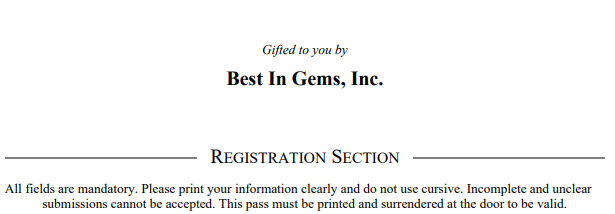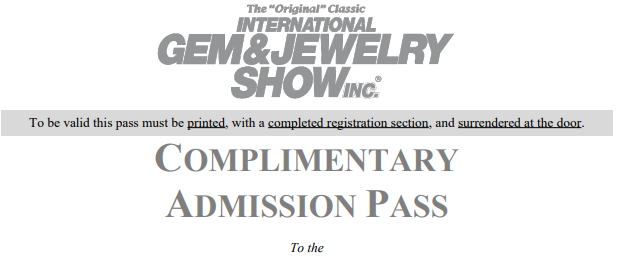 Only valid for the above show if the pass is printed with a completed registration section. For show information visit intergem.com.