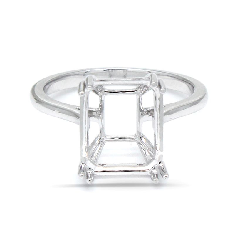 Emerald Cut 11x9mm Solitaire Ring Semi Mount, 14k White Gold